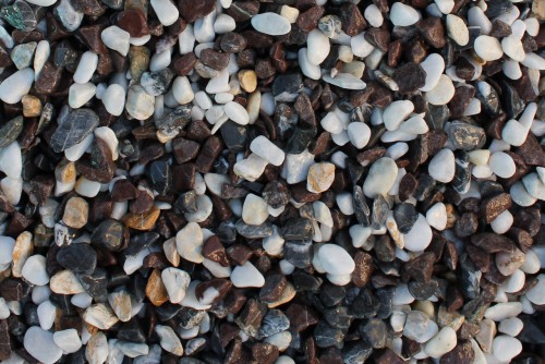 Kamenclub.ru: мраморная крошка (щебень галтованный микс:белый-черный-розовый-медовый) фр.10-20 мм. купить в Мариуполе - заказать природный камень по низким ценам оптом с доставкой от производителя - kamenclub.ru
