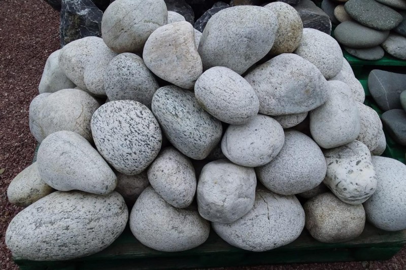 Kamenclub.ru: бело-серый валунчик фр.100-300 мм. купить в Мариуполе - заказать природный камень по низким ценам оптом с доставкой от производителя - kamenclub.ru